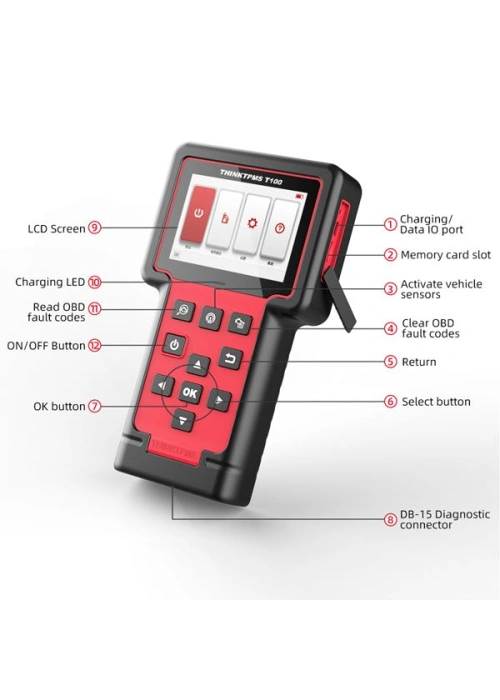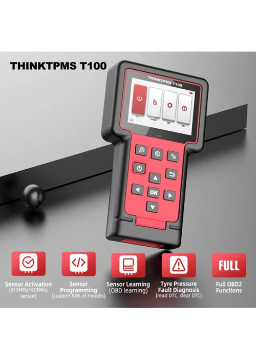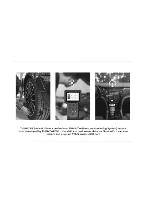 THINKCAR T-Wand 100 is a professional TPMS ( Tire Pressure Monitoring System) service tools developed by THINKCAR. With the ability to read sensor data via Bluetooth. It can also relearn and program TPMS sensors via OBD port.